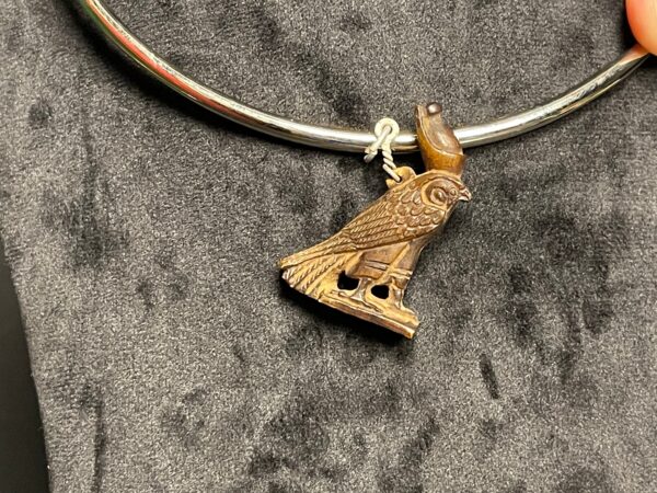 Amazing Amulet of The Egyptian Horus god of the sky wearing the Double crown of Egypt-made of Natural Sandal Wood -made with Egyptian soul