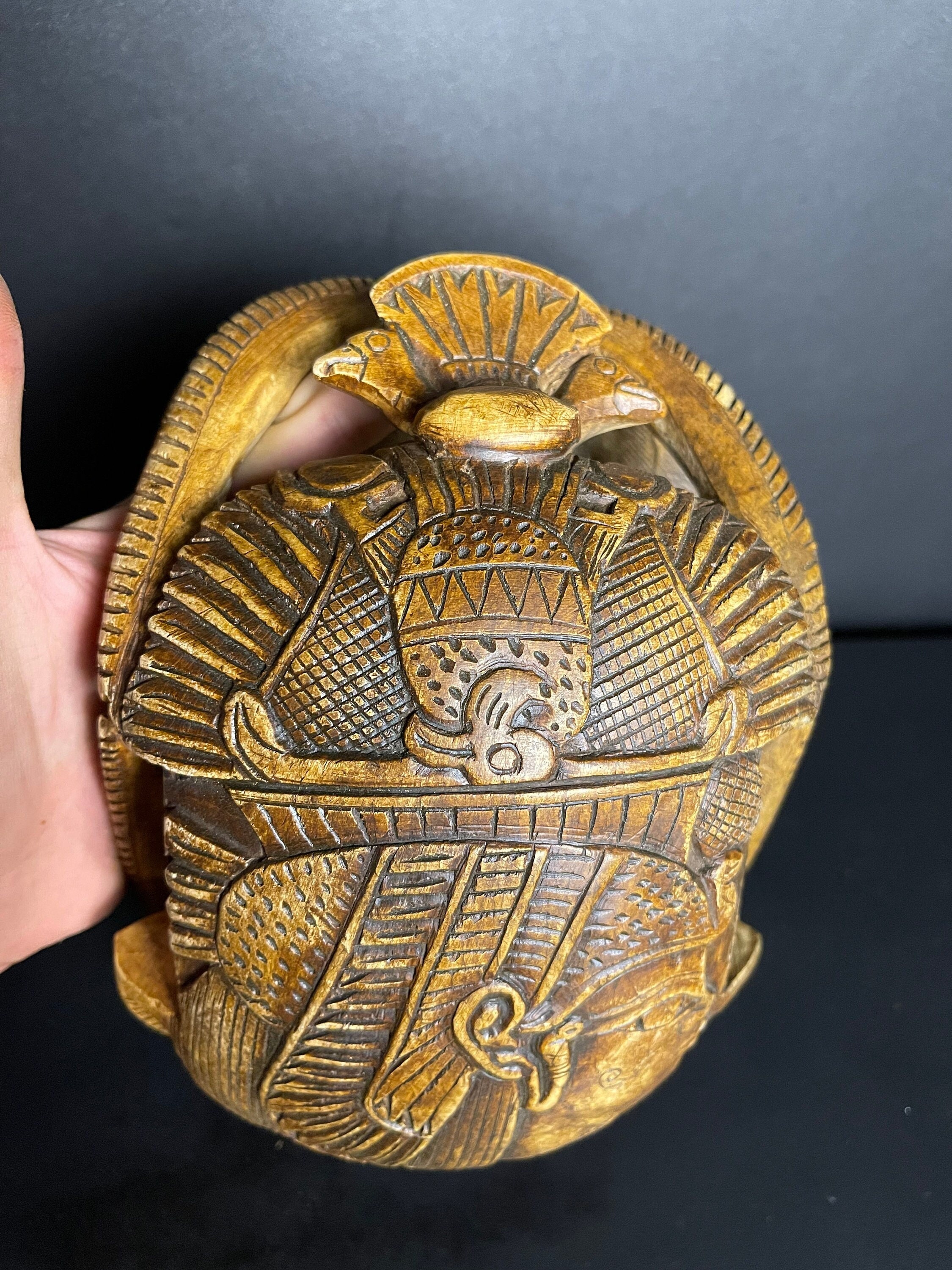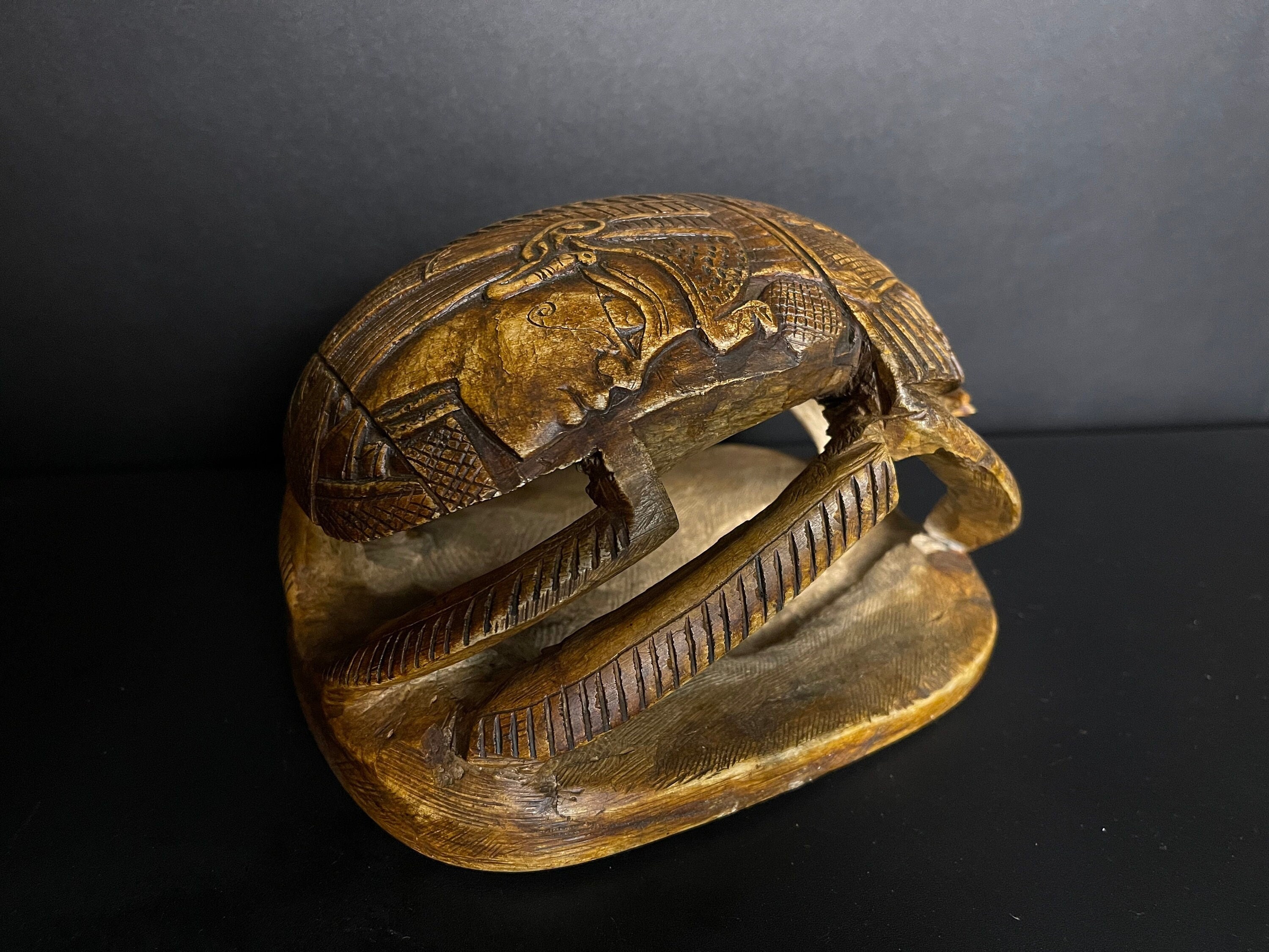 Amazing Giant Egyptian scarab with the face of Cleopatra and the Egyptian decorations – Hand made antique – made with Egyptian soul