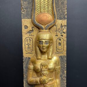 your amazing statue of the Egyptian Goddess Hathor goddess of women and fertility and love wearing the sun disc, made from Bluestone with the Egyptian hieroglyphs and with amazing hand carving and Fantastic Egyptian Old touching, specially made for you 😉