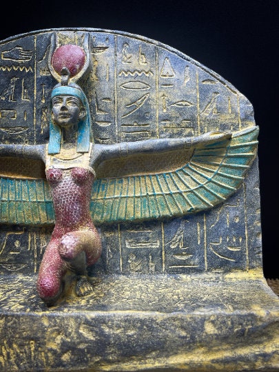 Ancient Egyptian Goddess Isis winged statue, Goddess of love and motherhood, handmade from Limestone, handmade antique representing Egyptian Art suitable for home decor