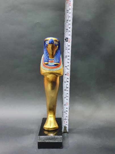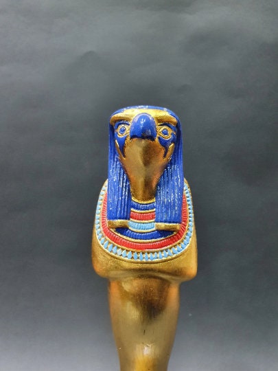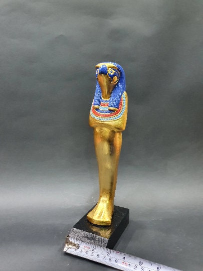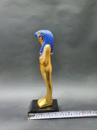 your beautiful Gold and Blue falcon god HORUS with the amazing Egyptian hand made touching made from Real stone stone