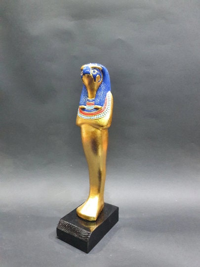 Horus, the falcon-headed god, is a familiar ancient Egyptian god. He has become one of the most commonly used symbols of Egypt, seen on Egyptian airplanes, and on hotels and restaurants throughout the land. Horus is the son of Osiris and Isis, the divine child of the holy family triad.X