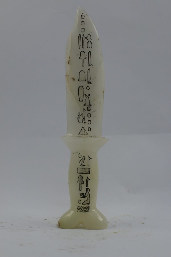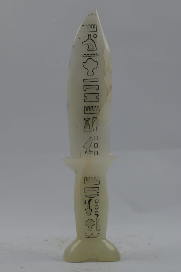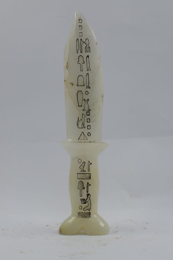 Ancient Egyptian knife of Tut -Hand Made of white alabaster stone with Egyptian decorations -our item is made with Egyptian soul