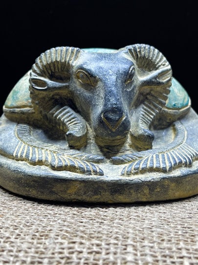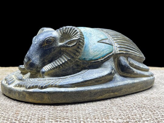 Ancient Egyptian Scarab with God Khanum ( Khnum ) head – Scarab beetle – Scarab figurine – Khanum Scarab Made in Egypt
