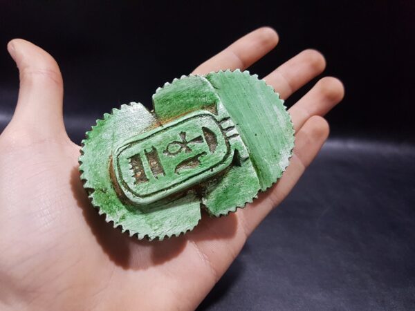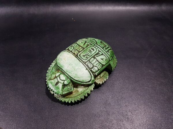 Beautiful Good luck SCARAB with Anubis the jackal God and the ANKH key of life – made of Lime stone – Our item is made with Egyptian soul