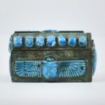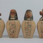 canopic jar, in ancient Egyptian funerary ritual, covered vessel of wood, stone, pottery, or faience in which was buried the embalmed viscera removed from a body during the process of mummification.X