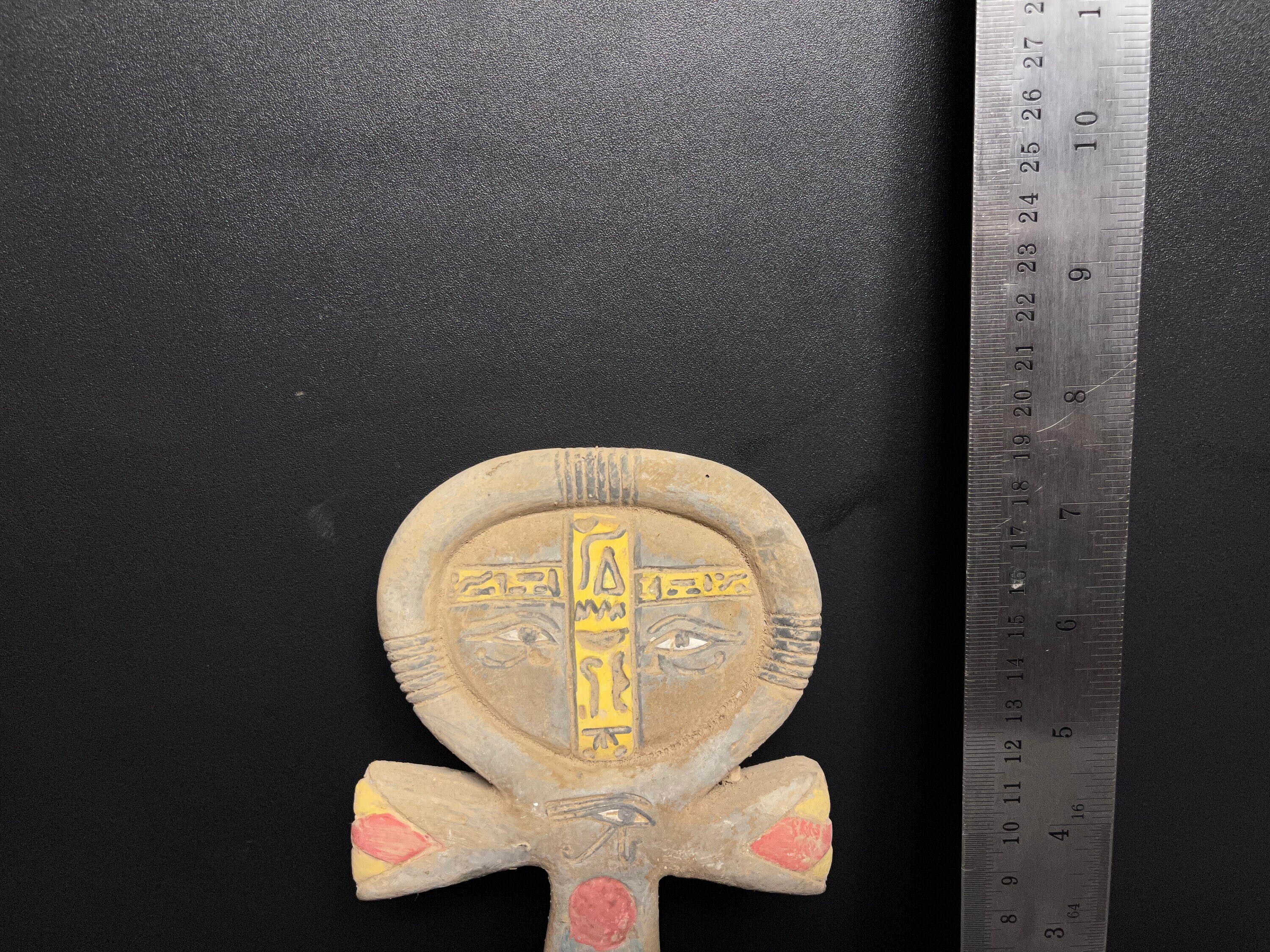 Egyptian ANKH (key of life) with the Beautiful Egyptian face – Lime stone with beautiful colors – Altar statue made with Egyptian soul