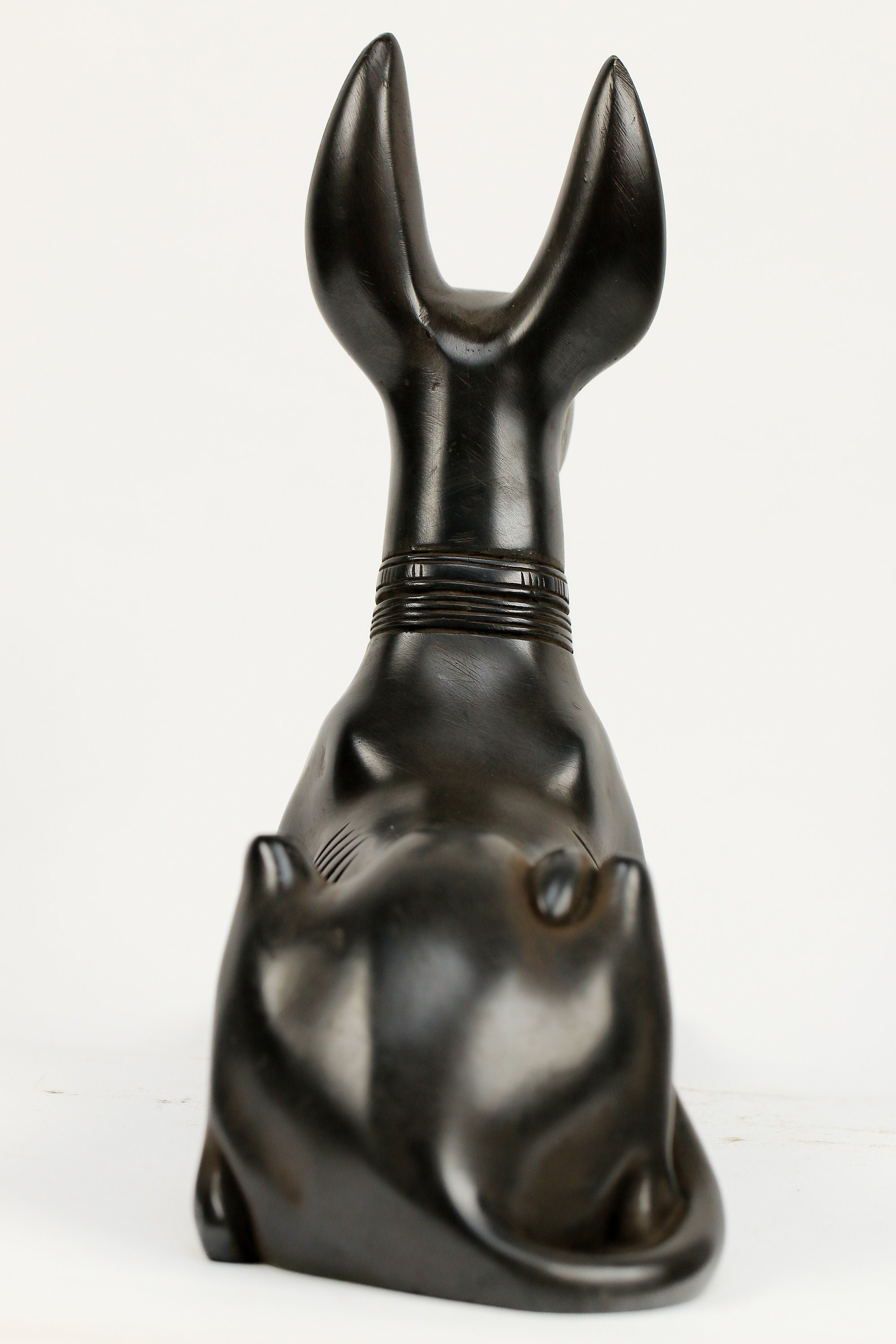 Marvelous Heavy Large Statue of Anubis Jackal God of Afterlife Seated in Position of Protection. Anubis is sitting to protect the tombs from invaders and enemies. As you can see the fine carved details by Egyptian artisans in the Jackal God ears and the ribbon around his neck.