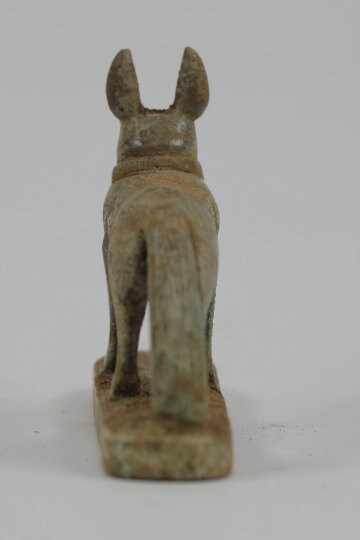 Marvelous Heavy Large Statue of Anubis Jackal God of Afterlife Seated in Position of Protection. Anubis is sitting to protect the tombs from invaders and enemies. As you can see the fine carved details by Egyptian artisans in the Jackal God ears and the ribbon around his neck.
