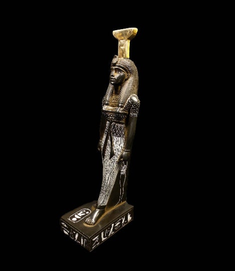 your amazing antique of Queen Nephthys the sister of Isis and especially Osiris and the Helpful goddess with the Cobra for protection, made from Basalt stone with the crown made from Brass and with amazing hand carving and beautiful Egyptian touching with the Egyptian hieroglyphs, specially made for you 😉