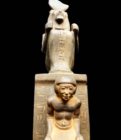 Egyptian Goddess Sekhmet with Anubis god of protection statuette – handmade in Egypt –