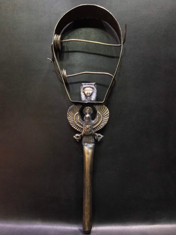 Egyptian Horus & Hathor Copper Sistrum (Musical Instrument) Replica from The Original Collection – Altar statue made with Egyptian soul
