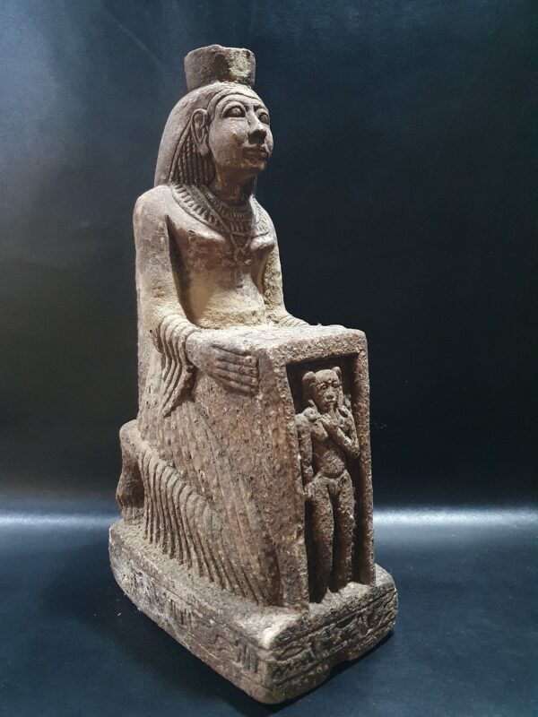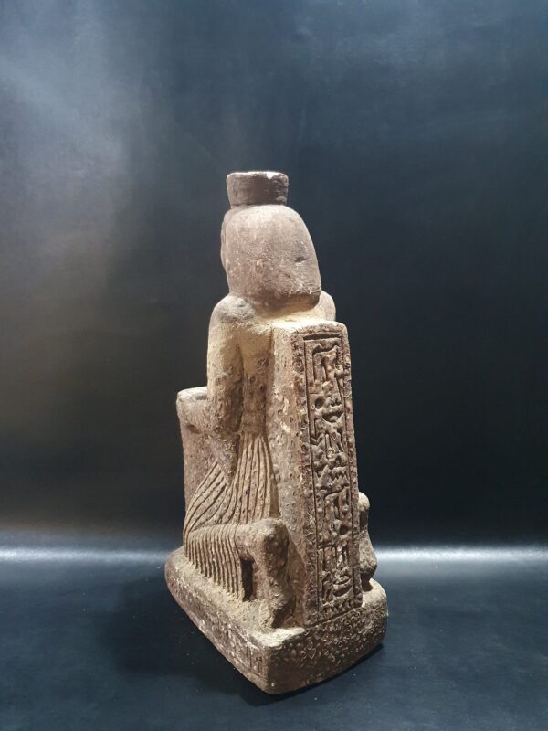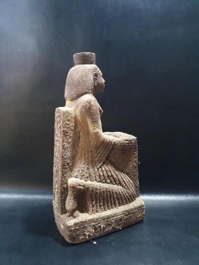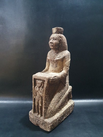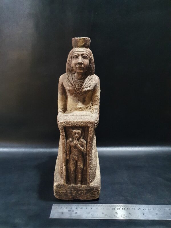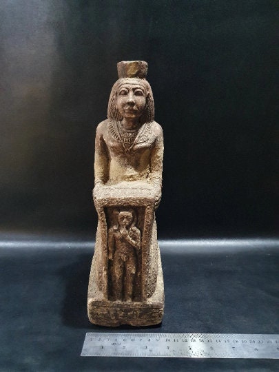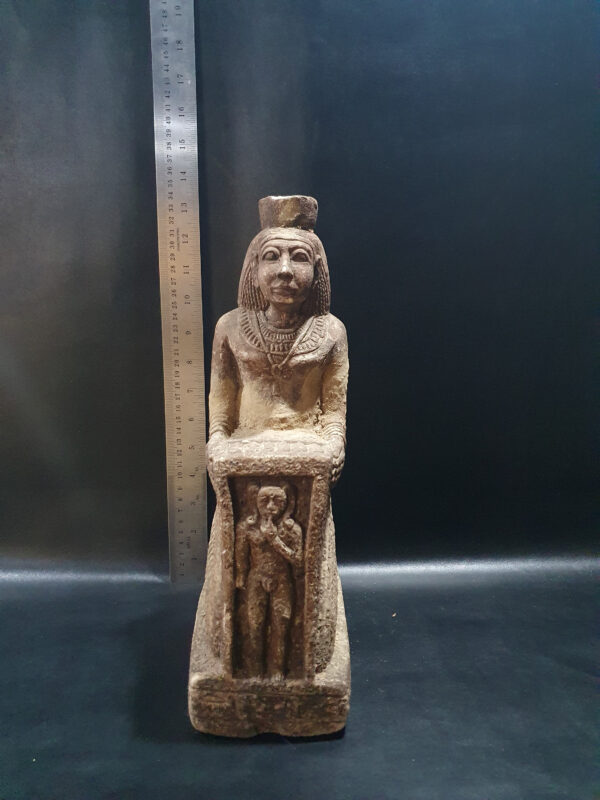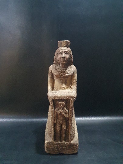 your amazing unique old ushabti made from lime stone of High priest of Hathor and wearing the cobra and setting to protect the baby , special hand carved for you