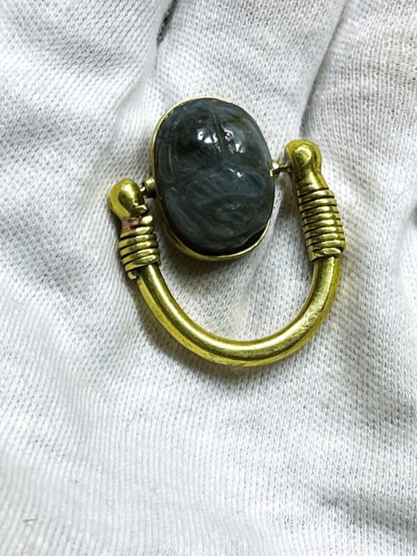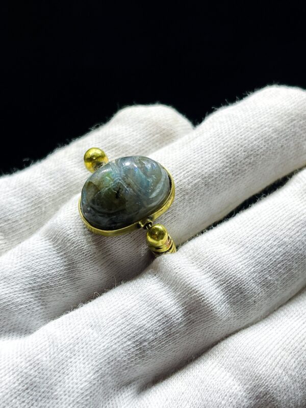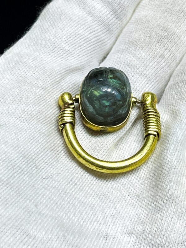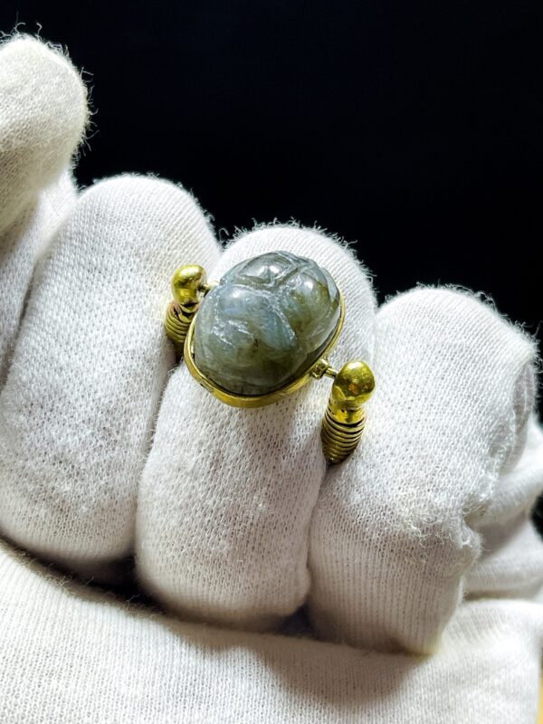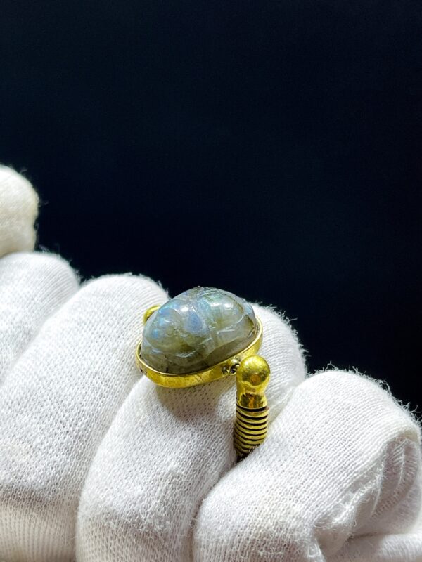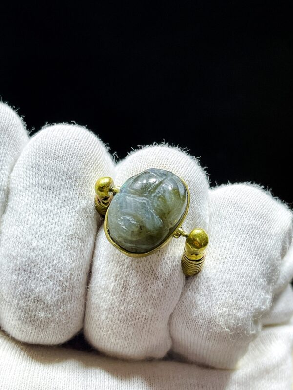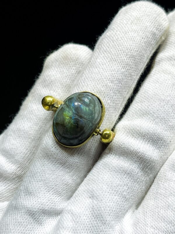 Egyptian Ring of the Egyptian Good luck scarab ( symbol of good luck and protection ) to protect you and give you the best luck, Your Ring is made from Brass with an amazingly beautiful Gold color, and the Marvelous Scarab is made from Natural labradorite stone, Specially made for you 😉