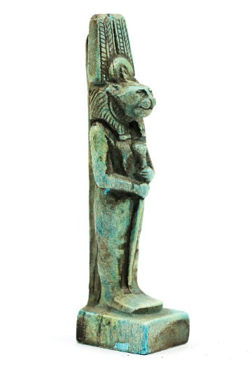 Ancient Egyptian goddess sekhmet statuette , goddess of war and destroy , handmade antique representing egyptian art , ancient sculpture can be used as a home decor