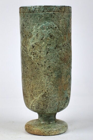 This is an ancient egyptian vase carved percisely from flame stone with beautiful glaze touching, it’s handmade in Egypt.