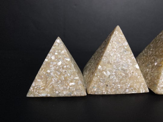 Help transform areas of high electromagnetic pollution into healing energy. This piece is for those that are sensitive to EMF’s, those looking for protection and deep sound sleep. When close to this pyramid it helps one to drop deeper into meditation, it works as a powerful sleep aide helping one fall asleep faster with uninterrupted purifying restful sleep. This is great for those that struggle with getting a good night of sleep or wake up multiple times a night. My friends and family that have purchased this large pyramid have noticed a difference on the first night, even the nonbelievers of orgonite have changed their opinion and reported better sleep quality. We designed our pyramids to filter toxins and pollutions produced by modern day technology leading. Orgone helps clear stagnant stuck energy and helps promote longevity for all living things in its presence.