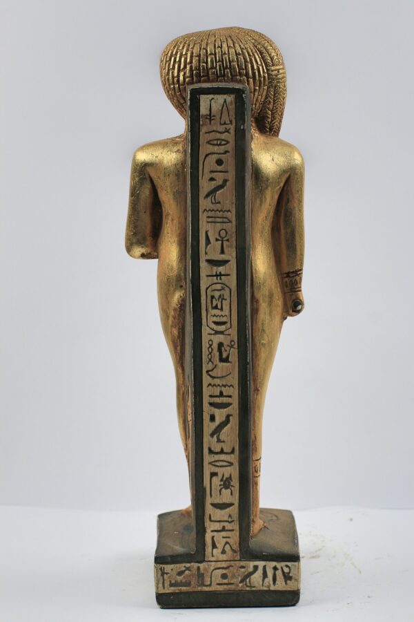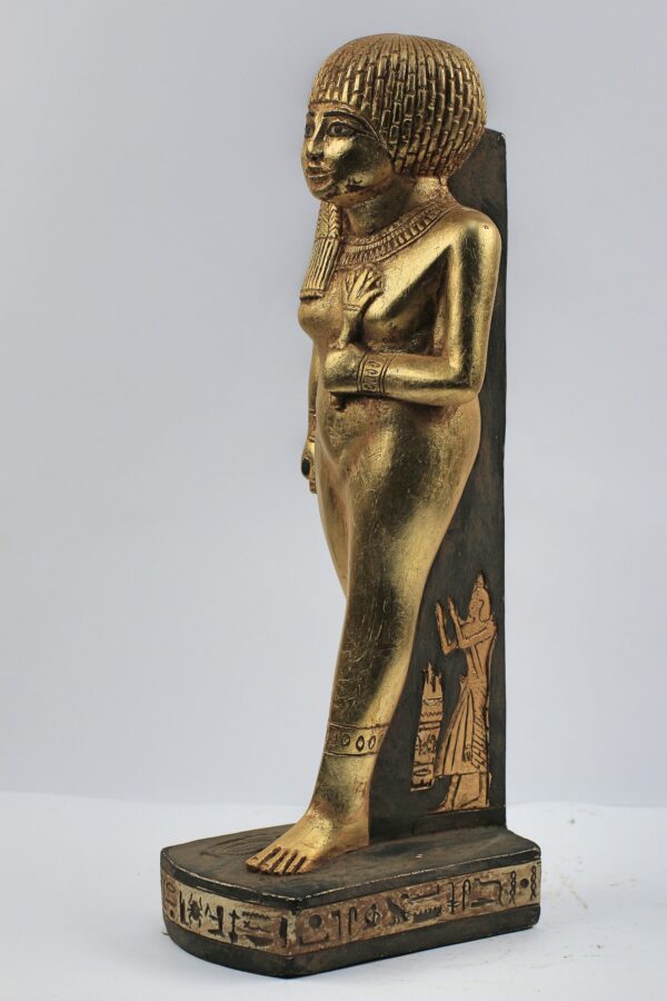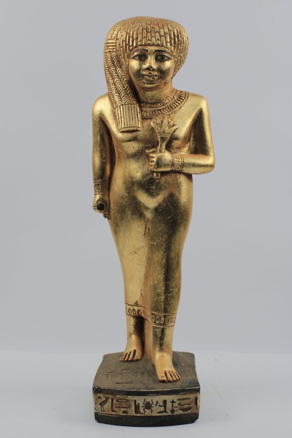 Fantastic Queen Tiye holding the lotus flower made from Sandstone with amazing gold Leaf – replica – our item is made with Egyptian soul