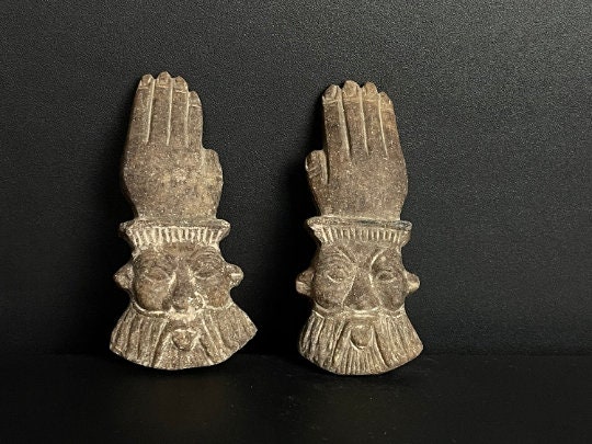 Fantastic Two Egyptian hands with BES god of joy and fertility Face -made from Granite stone – !!One of a Kind!! – made with Egyptian soul
