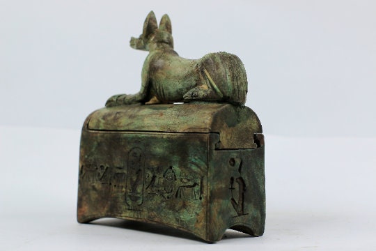 YOUR FOUR REPLICA CANOPIC JARS of ANUBIS the god of medicine and mummification With the box like a tomb MADE FORM Flame Stone with the jewelry box with the beautiful Egyptian decoration made for you