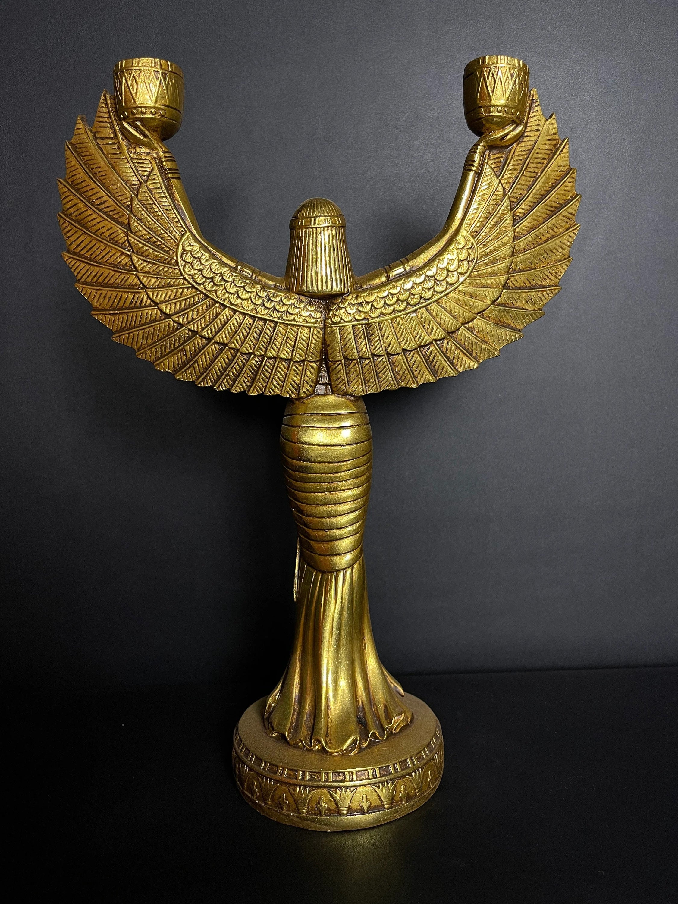 goddess Isis Wings, Goddess statue, large Sculpture, gold painting Unique Egyptian art heavy made in Egypt