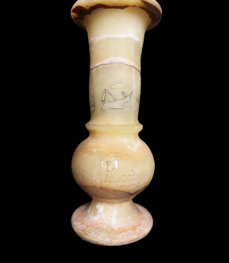 Gorgeous Egyptian Handmade Vase (Amphora) with Egyptian Inscriptions-Handmade from Real Natural Alabaster stone in Egypt with love