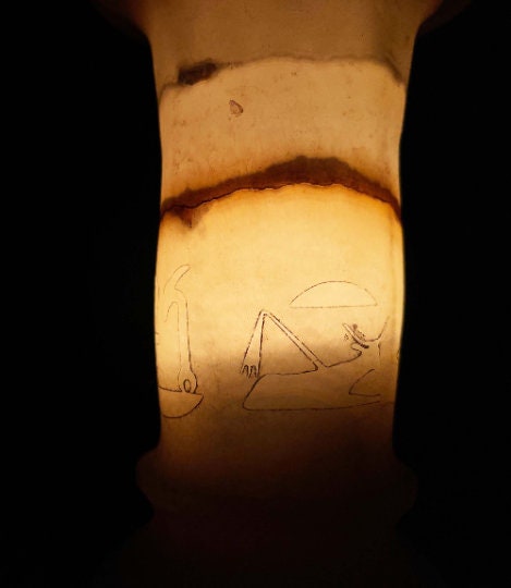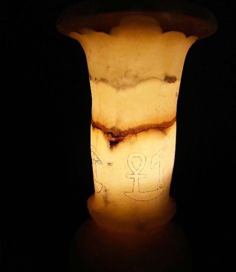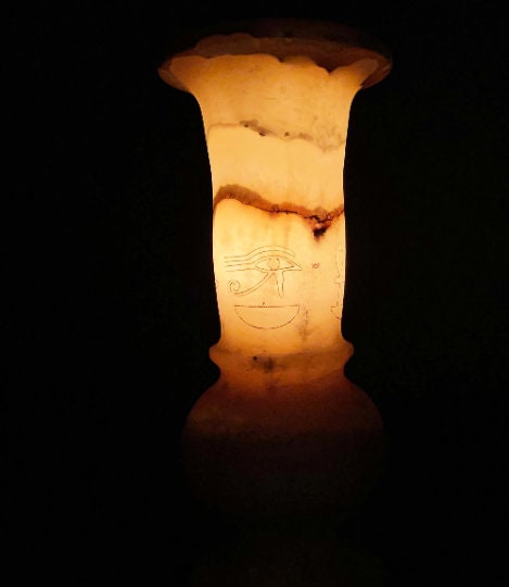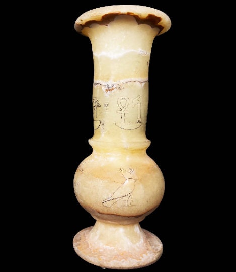 your unique handmade Egyptian Vase (Amphora) with the Egyptian hieroglyphs and inscriptions and with Egyptian details, Handmade from Natural Alabaster stone with the perfect hand carving, Specially made for you 😉