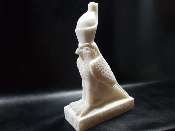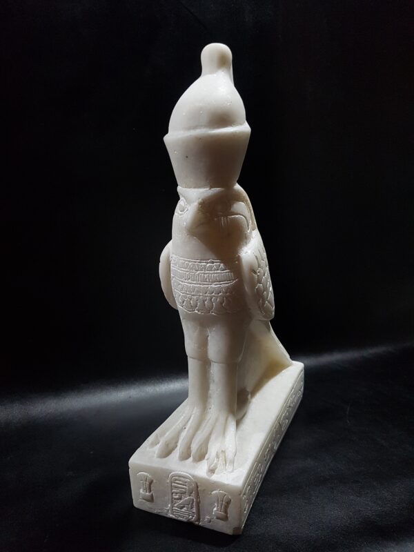 Horus The falcon god of the sky as a Falcon Figurine Wearing The Double Crown of Egypt – Made of Alabaster Stone – made with Egyptian soul