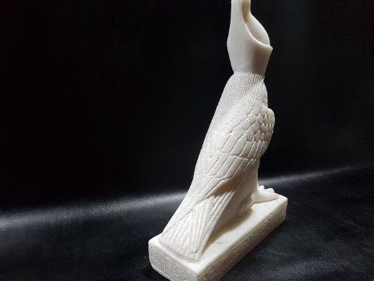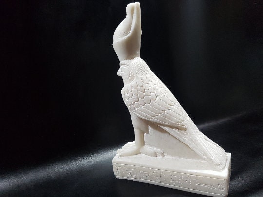 A unique Egyptian handmade replica of God Horus Statue as a Falcon Figurine wearing the double crown of Egypt with the Egyptian heliograph , made from Real alabaster stone , special made for you 😉