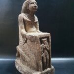 In a perfect scene Goddess Hathor standing behind Nefertari wife of Ramses the second – Altar statue made of Heavy stone – Egyptian Goddess