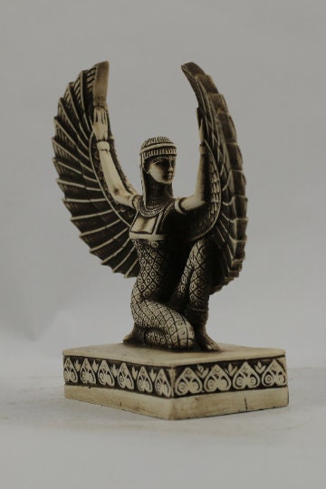 your beautiful ISIS goddess of healing and magic spreading her amazing wings of protection to protect you and your family , hand made from alabaster stone with perfect hand carving and decorations like the original one 😉