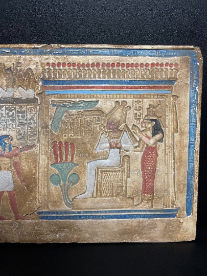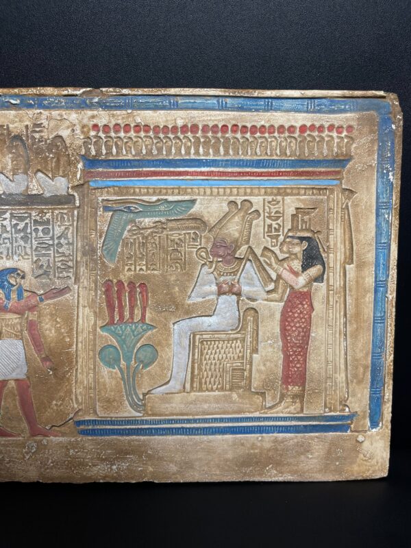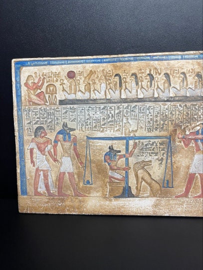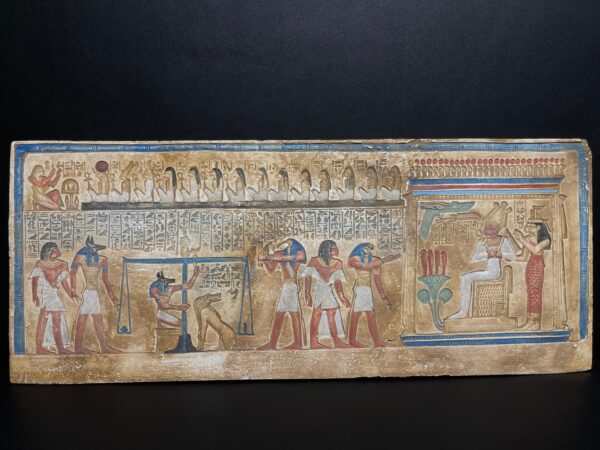 Your unique wall relief of the Judgment day Tablet contains sculptures of The ANUBIS (God of the Dead) , made from Real Lime stone that comes from Luxor desert , special made for pharaohs lovers 😉