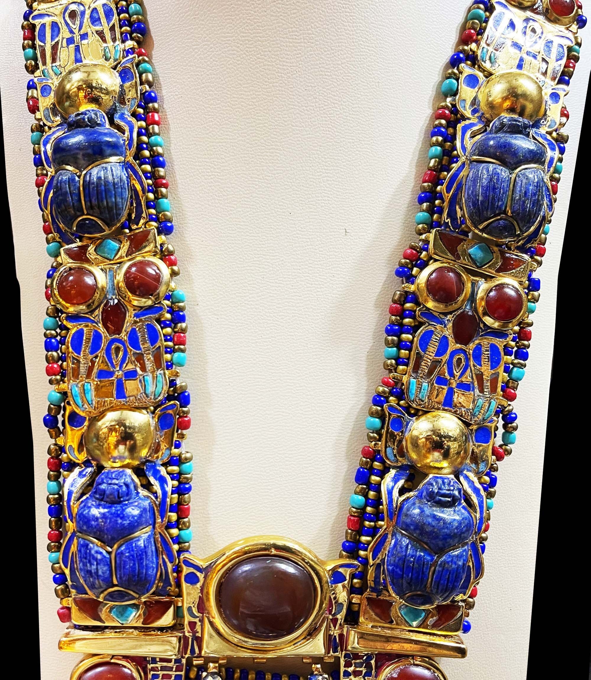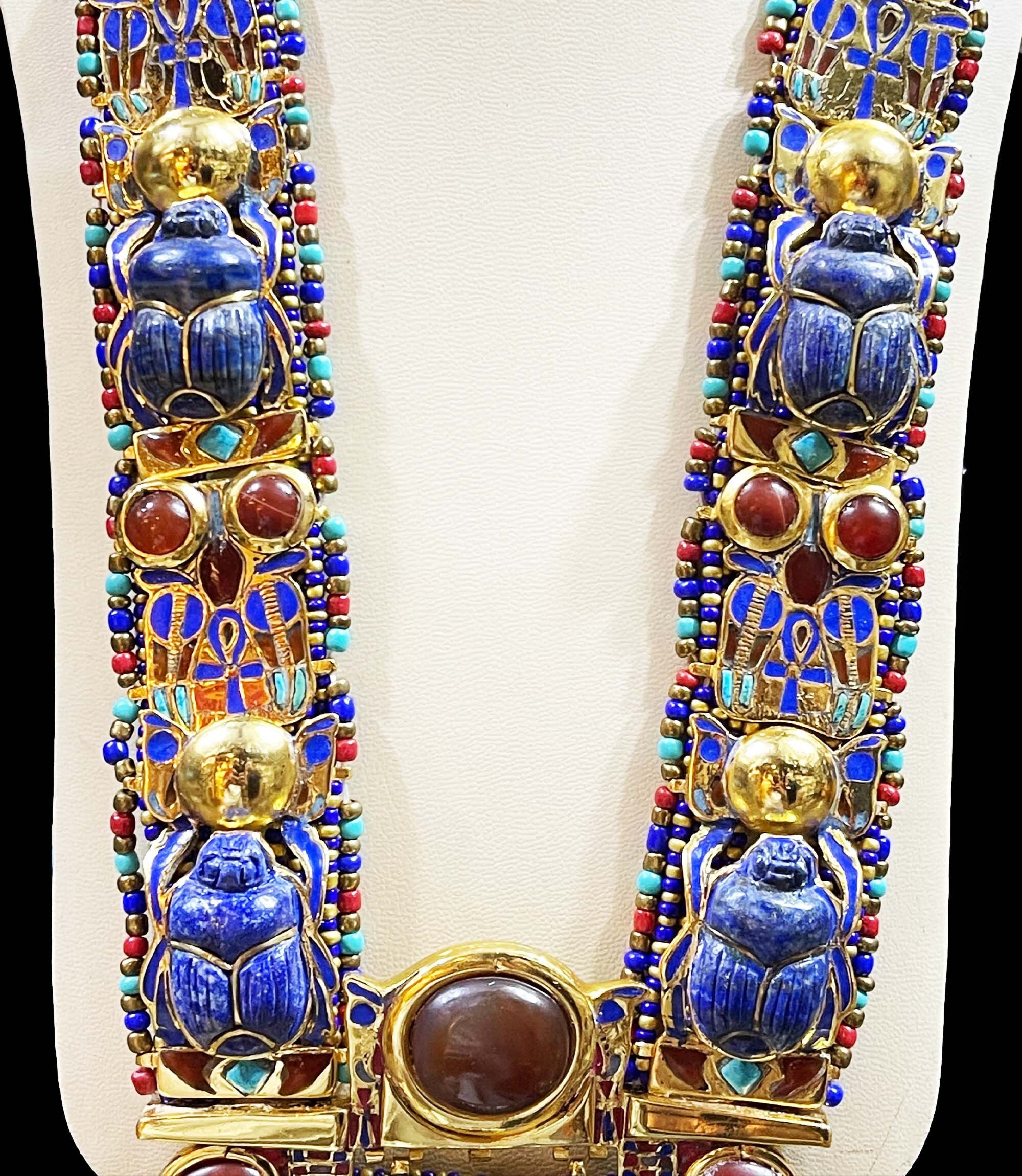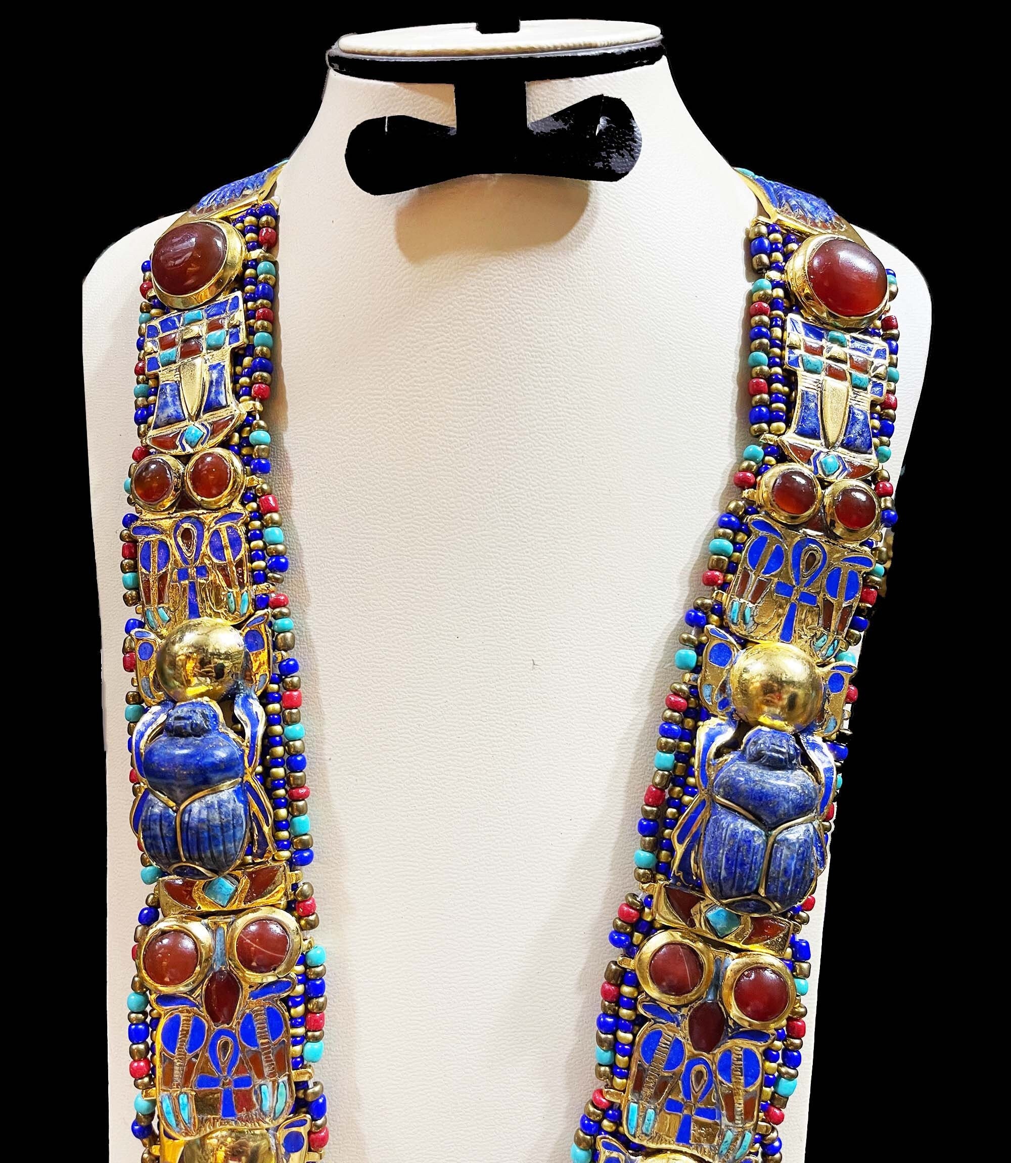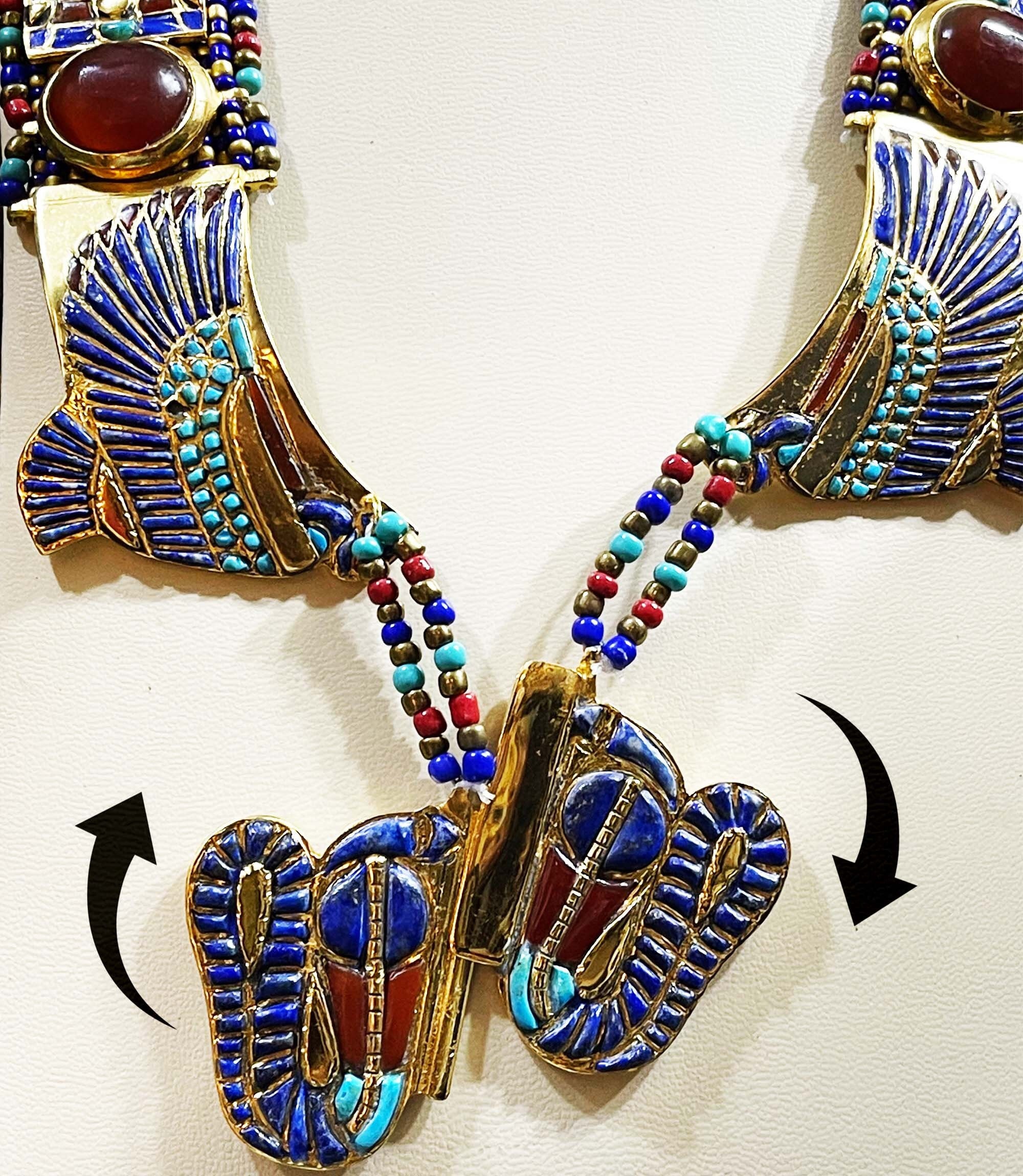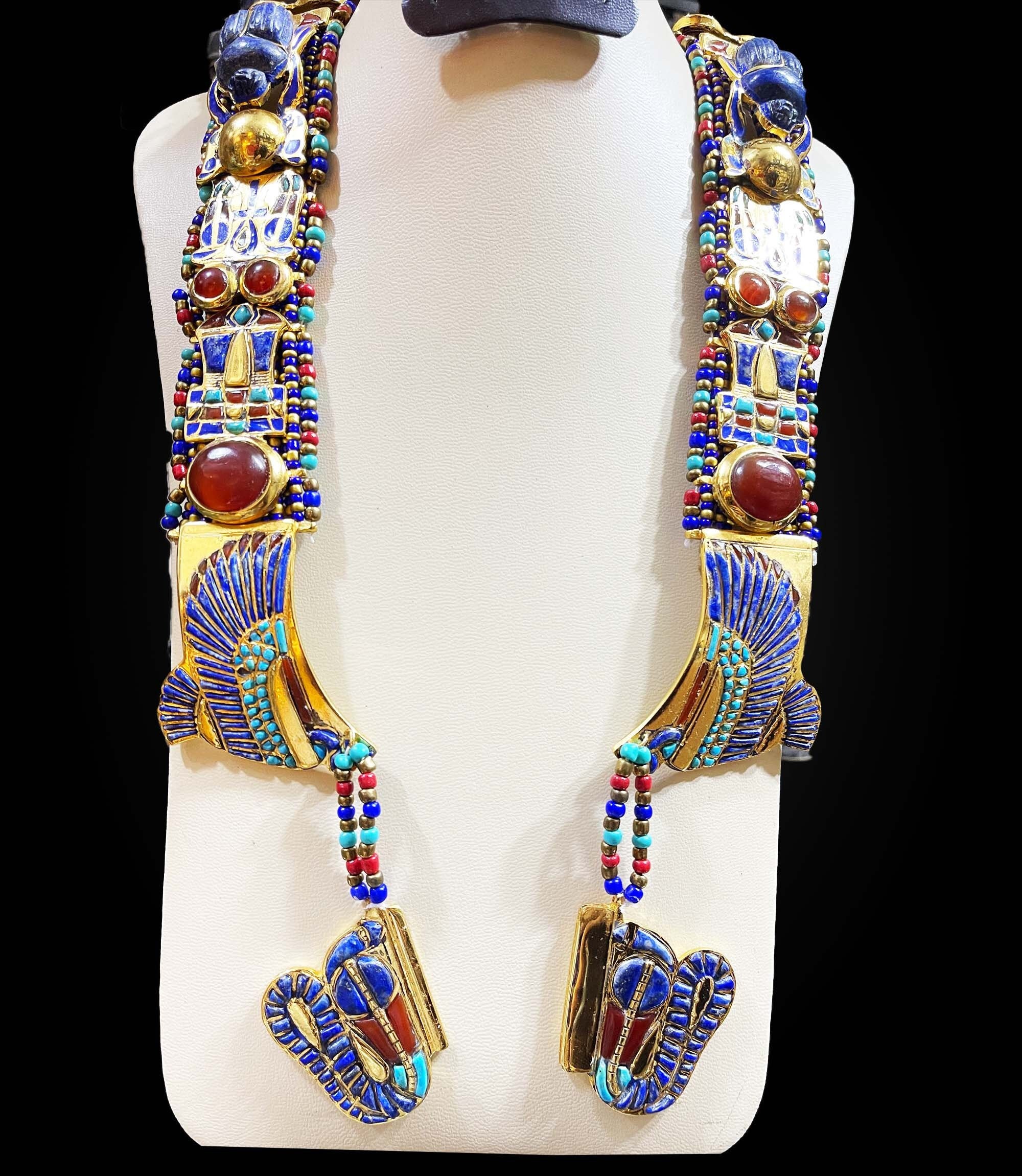 King Tutankhamun Necklace with The Egyptian Scarab and two Cobras – Gemstone necklace – One Of A Kind
