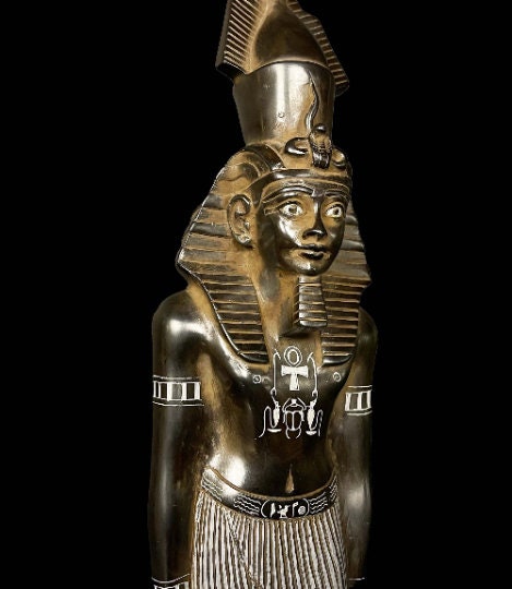 Large Unique Ancient Egyptian RAMSES II wearing the double crown- made from Natural Basalt stone – made with Egyptian soul and love