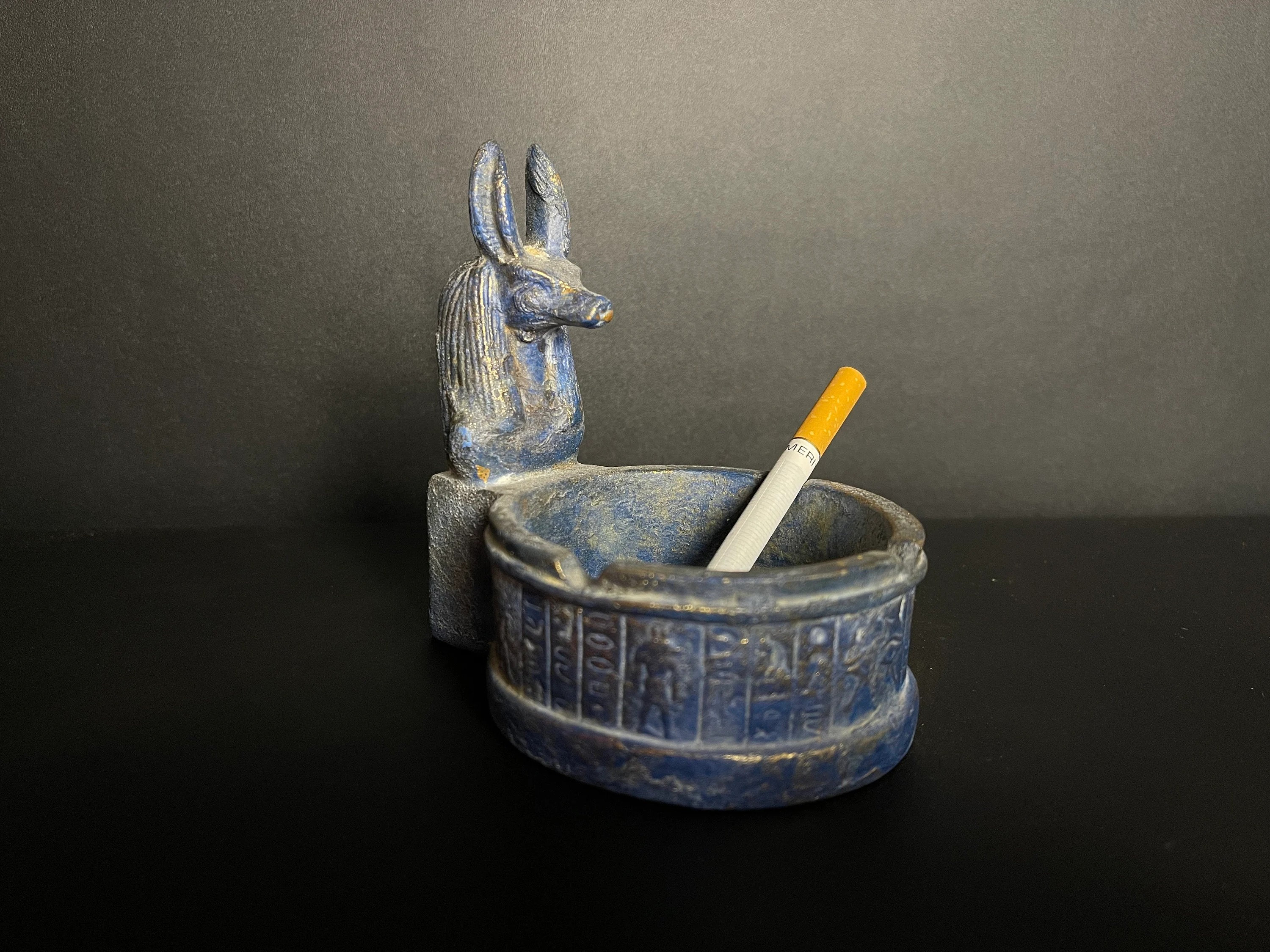 Marvelous Anubis Ash Tray Carved from Blue Stone with Egyptian Hieroglyphs and the beautiful color – our item is made with Egyptian soul