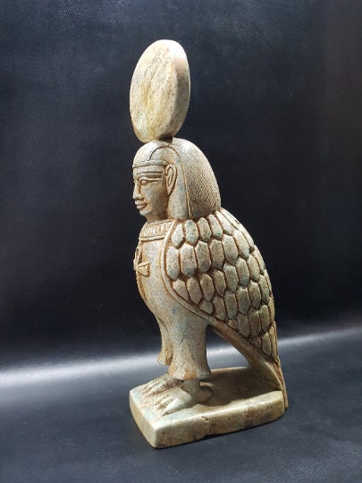Marvelous BA-Bird with the ANKH key and the sun disk god of pharaoh’s soul -made from Flame stone – our item is made with Egyptian soul
