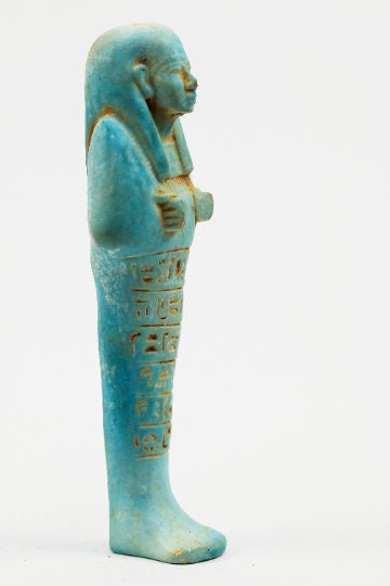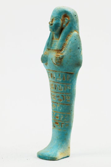 you amazing original ushabti of pharaoh’s made from ceramic with amazing turquoise color and patina with the perfect Egyptian hand carving like the original one in the tombs , special made for you
