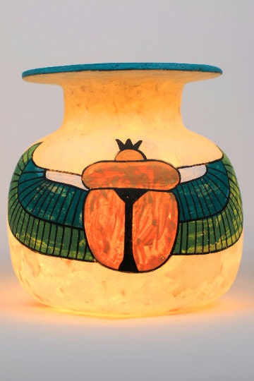 The “Oriental” alabaster was highly esteemed for making small perfume bottles or ointment vases called alabastra; the vessel name has been suggested as a possible source of the mineral name. In Egypt, craftsmen used alabaster for canopic jars and various other sacred and sepulchral objects. A sarcophagus discovered in the tomb of Seti I near Thebes is on display in Sir John Soane’s Museum, London; it is carved in a single block of translucent calcite alabaster from Alabastron.X