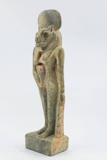 Ancient Egyptian goddess sekhmet statuette , goddess of war and destroy , handmade antique representing egyptian art , ancient sculpture can be used as a home decor