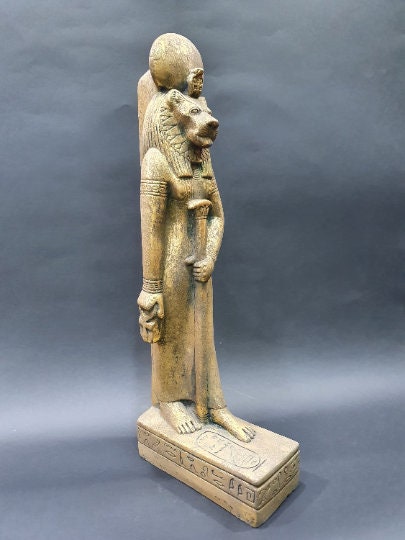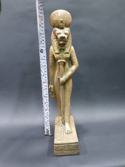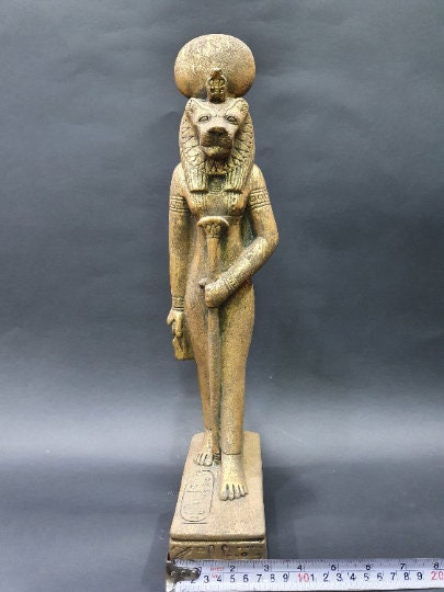 Ancient Egyptian goddess sekhmet statuette , goddess of war and destroy , handmade antique representing egyptian art , ancient sculpture can be used as a home decor