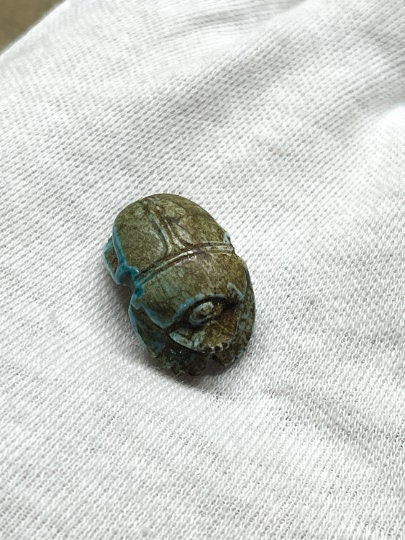 Handmade Replica good luck Egyptian scarab like the one in the museum with the Egyptian decoration, handmade from Natural Egyptian stone with amazing Glaze touching!