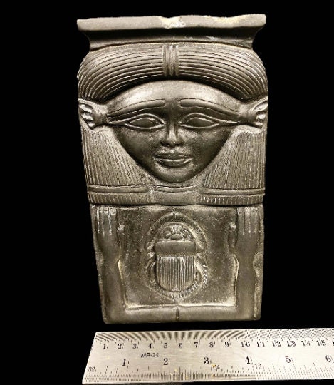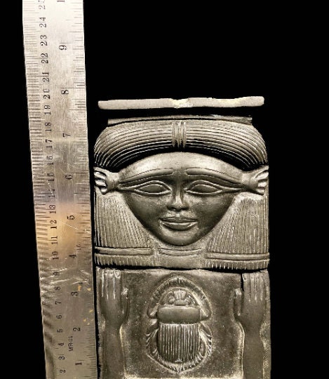your amazing statue of the Egyptian Goddess Hathor goddess of women and fertility with the Egyptian Scarab to give you the good luck and protect you as a wall relief, made from Natural Basalt stone with amazing hand carving and Fantastic Egyptian touching, specially made for you 😉