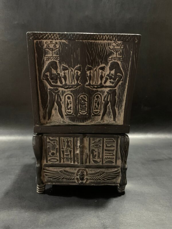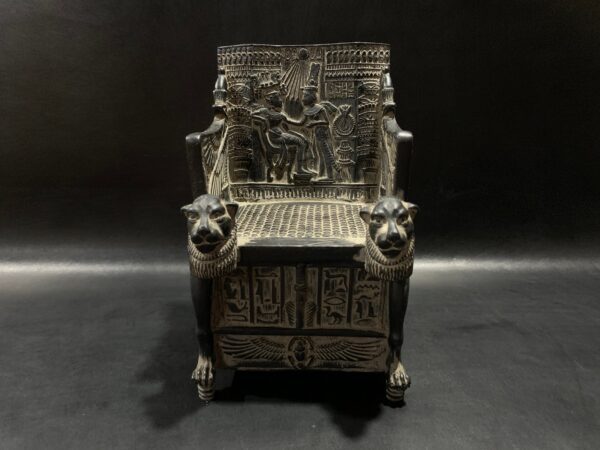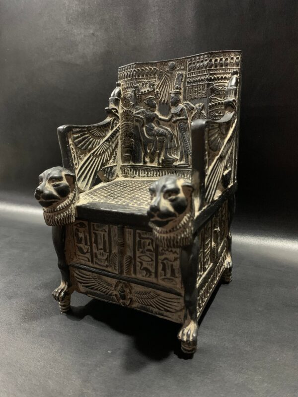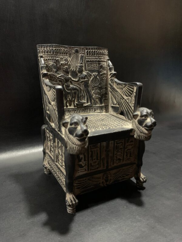 Replica King TUTANKHAMUN Throne as a jewelry box with the Egyptian decoration Made from old Basalt stone – Heavy – made with Egyptian soul