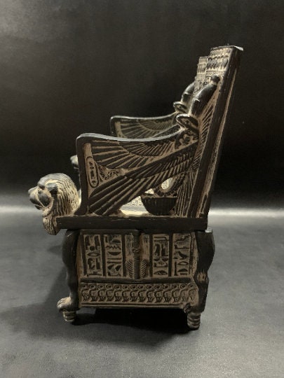 your amazing replica Throne of king Tutankhamun as a jewelry box like the one in the tomb made from Egyptian old Basalt stone with Sekhmet goddess head as a Lion and with the fantastic Hand carving , special made for you 🙂