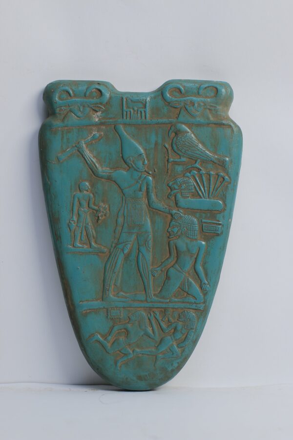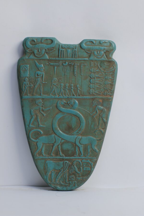 Replica Narmer Palette (the Great Hierakonpolis Palette) with HATHOR – Made from Flame stone- 100 % Hand made Altar statue by Egyptian Hands