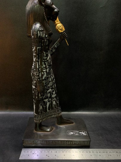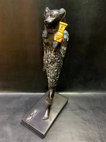 Ancient Egyptian goddess sekhmet statuette , goddess of war and destroy , handmade antique representing egyptian art , ancient sculpture can be used as a home decor