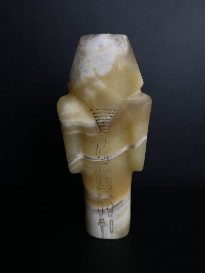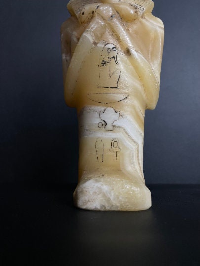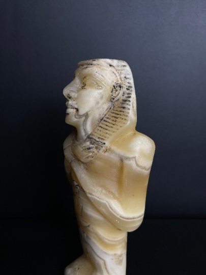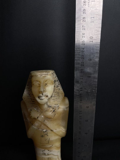 your Masterpiece Ushabti of King Tutankhamun in a beautiful Details with amazing hand carving and the Egyptian inscriptions , Hand made of the Real Natural Alabaster stone to make you feel the power of King Tut 😉