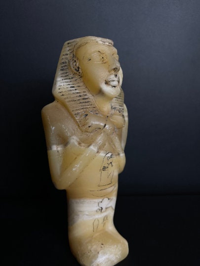 Replica Ushabti of King TUTANKHAMUN(The Powerful King in Ancient Egypt)made of Real Alabaster stone with Egyptian inscriptions-made in Egypt