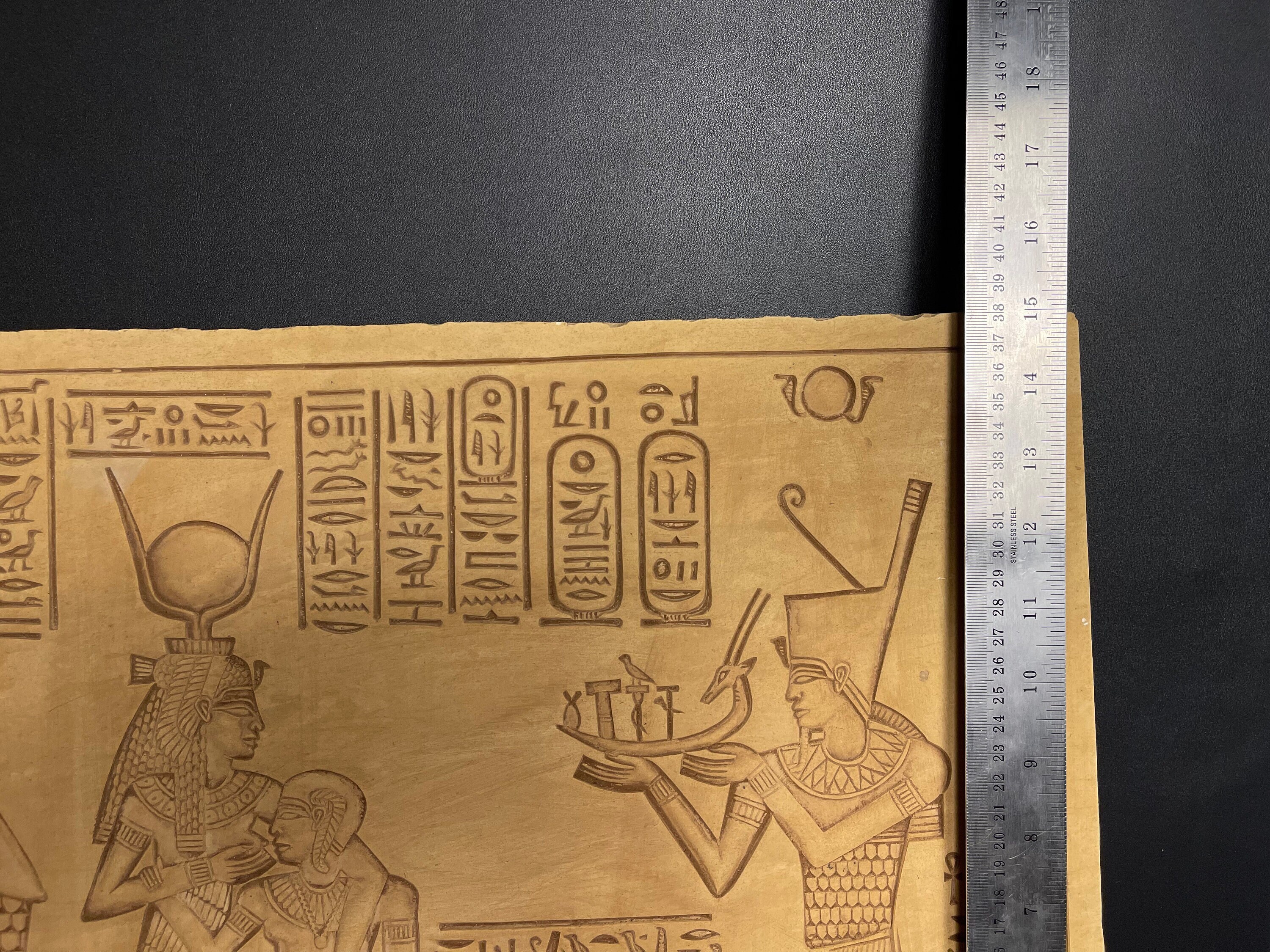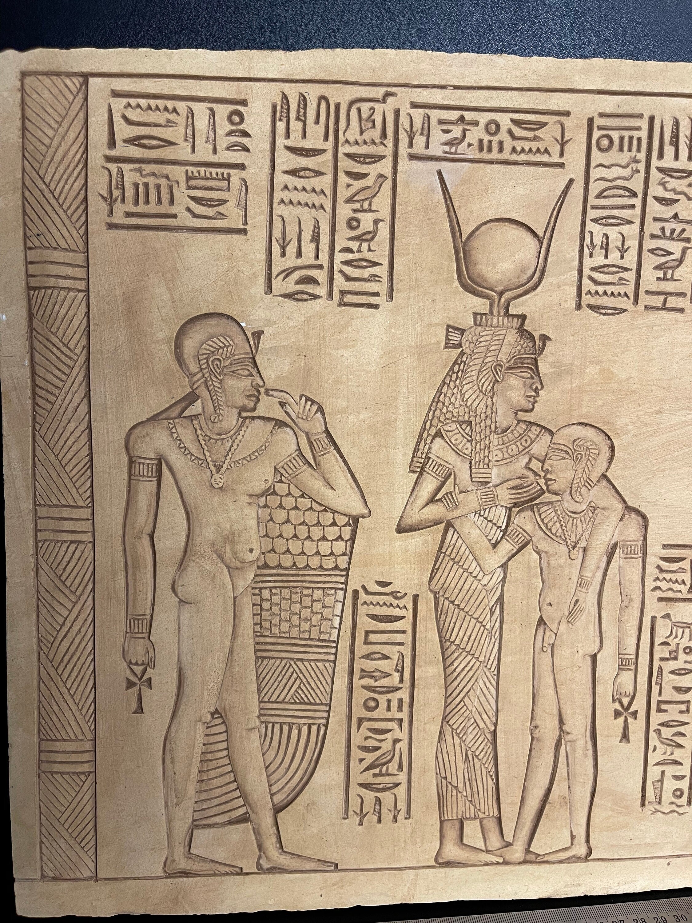 Replica wall relief of ISIS goddess Feeding Horus god of the sky and Amon Ra Giving Her the judgment-Altar statue made with Egyptian soul