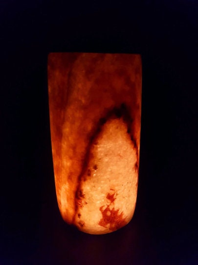 Stunning Translucent Egyptian Alabaster Candle Holder – Relaxing Lighting Romantic/Healing/Energy 9″H * 4″W